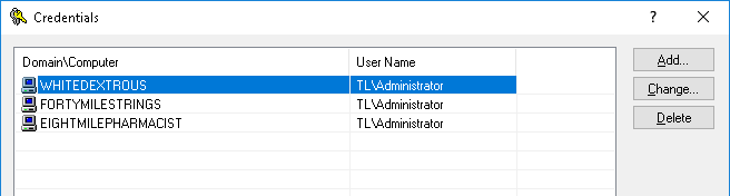 To delete credentials, select the record in the list and click Delete. Using CTRL and/or SHIFT you can select and remove several records simultaneously.