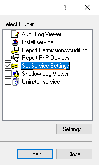 To define parameters for the selected plug-in, use the Settings button below the plug-ins list. If the plug-in does not have additional parameters, this button is unavailable.