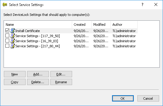 Edit to open DeviceLock Service Settings Editor. DeviceLock Service Settings Editor is used for creating and modifying files with settings, permissions, audit, shadowing rules and alerts for DeviceLock Service (DeviceLock Service settings files). For more information, see