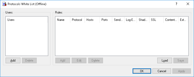 4. In the left pane of the Protocols White List (Offline) dialog box, under Users, click Add.