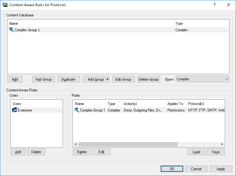14. In the Content-Aware Rules for Protocols dialog box, click OK or Apply to apply the rule.