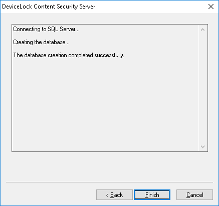 Installing DeviceLock Discovery : Installing DeviceLock Content Security Server : Perform Configuration and Complete Installation : Completing configuration