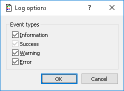 Double-click the Log options parameter to open the dialog box where you can specify the types of event to record to the Discovery tasks log.