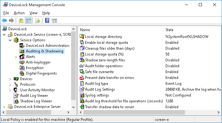 These parameters allow you to tune up auditing and shadowing for DeviceLock Service.