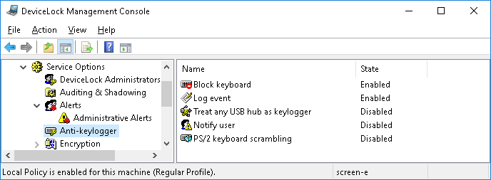 These parameters allow you to tune up DeviceLock’s ability to detect hardware keyloggers and to define what DeviceLock Service should do when a keylogger is found.