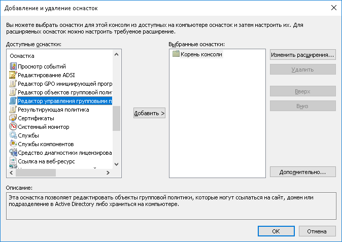 Можно также запустить консоль управления MMC и вручную добавить оснастку Редактор управления групповыми политиками: