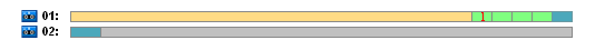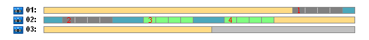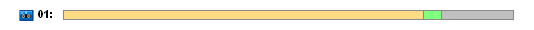 Предположим, что первая операция резервного копирования запланирована на пятницу, 1 января. В этот день в 23:00 создается первая полная резервная копия (320 ГБ на ленте размером 400 ГБ). Так как установлен режим Использовать отдельный набор лент, извлекается подключенная в данный момент лента (если это не свободная лента). Затем загружается свободная лента для резервного копирования данных. Лента отмечается числом 01, как показано на приведенном ниже рисунке. В соответствии с легендой, описанной в разделе Ситуация для анализа, полная резервная копия данных отображается как оранжевый прямоугольник на рисунке.