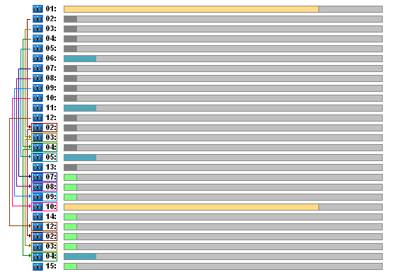 Эти параметры определяют классическую схему ротации лент для схемы «дед-отец-сын». На рисунке показано начало схемы ротации, в которой для рассматриваемого случая используется 8 лент для ежедневных резервных копий, 6 лент для еженедельных резервных копий и 13 лент для ежемесячных резервных копий (так как в году 13 четырехнедельных циклов). И одна лента требуется для следующей резервной копии. В целом эта схема ротации в сочетании с параметрами требует 28 лент.