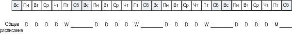 Допустим, для еженедельного/ежемесячного резервного копирования выбрана пятница. Ниже приводится общее расписание, помеченное согласно выбранным элементам.