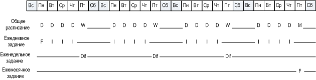 Допустим, для еженедельного/ежемесячного резервного копирования выбрана пятница. Ниже представлено действительное расписание заданий резервного копирования, которые будут созданы.