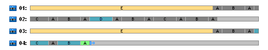 На первом рисунке показано использование лент по схеме «Ханойская башня» в сочетании с упомянутыми выше параметрами ленты. Повторяющаяся часть схемы содержит шестнадцать сеансов резервного копирования. На рисунке показано состояние архива резервных копий в момент завершения 17-го сеанса.