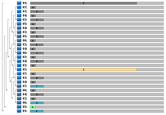 Максимальное количество лент в ротации — семь; это больше, чем в классической пятиуровневой схеме «Ханойская башня».