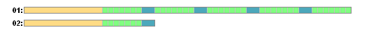 Ситуация определяет ряд резервных копий, который состоит из двух разделов. На нижеприведенном рисунке показаны разделы в момент перед удалением первой резервной копии. На рисунке полные, дифференциальные и инкрементные резервные копии выделены соответственно оранжевыми, синими и зелеными прямоугольниками.