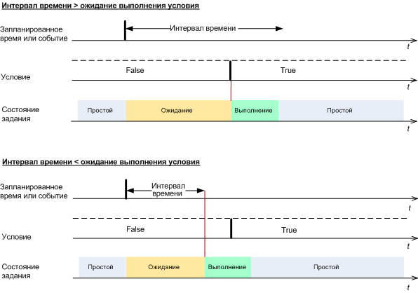 С этой настройкой планировщик начинает отслеживать условия и запускает задание, как только условия выполняются. Если условия не выполняются, задание не запускается.