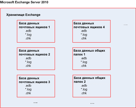 Microsoft Exchange Server хранит свои данные в едином репозитории, который называется банком данных (в Exchange 2003/2007), хранилищем Exchange (в Exchange 2010) или управляемым банком (в Exchange 2013 или более поздней версии). Основные компоненты банка данных — группы хранения (только в Exchange 2003/2007) и базы данных Exchange.