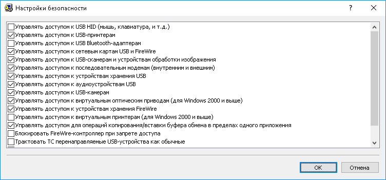 DeviceLock предоставляет ряд дополнительных настроек безопасности, которые влияют на разрешения и правила аудита для некоторых типов устройств. Эти настройки позволяют полностью блокировать определенные типы устройств, разрешив при этом использование отдельных классов устройств внутри этих типов. Например, можно полностью закрыть доступ к USB-порту, но разрешить использование любых мышей и клавиатур с USB-интерфейсом. Подробнее см. в разделе