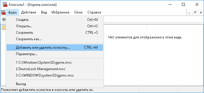 Для доступа к DeviceLock Group Policy Manager выполните следующие действия:
