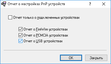 •Отчет о PCMCIA устройствах - Установите этот флажок, чтобы включить в отчет информацию об устройствах, подключенных через PCMCIA-интерфейс.