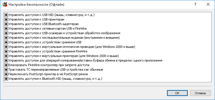 4. В диалоговом окне Настройки безопасности (Офлайн) установите флажки для настроек безопасности, которые требуется задать.