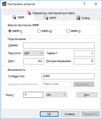 Настройки алертов: SNMP
