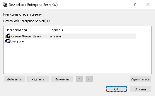 В диалоговом окне DeviceLock Enterprise Server(ы) можно просмотреть или изменить список серверов: