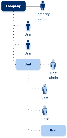 Администраторы могут создавать отделы, которые обычно соответствуют отделам или подразделениям организации. Каждая учетная запись существует на уровне компании или в отделе.
