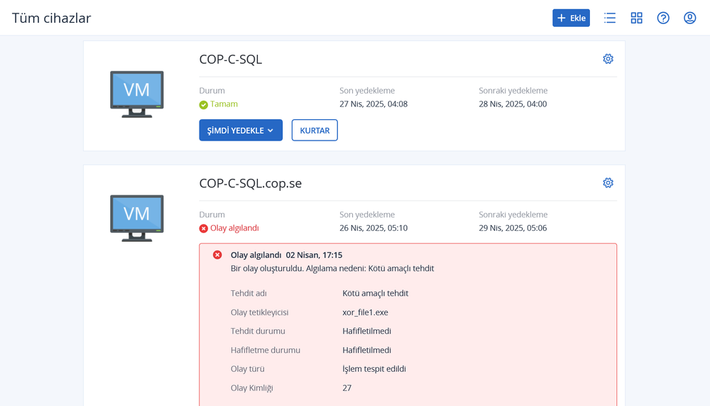 Uzaktan çalışanlar ve şube ofisleri için güvenli, self-servis yedekleme ve tek tıklamayla kurtarma ile süreklilik ve verim kazanın.