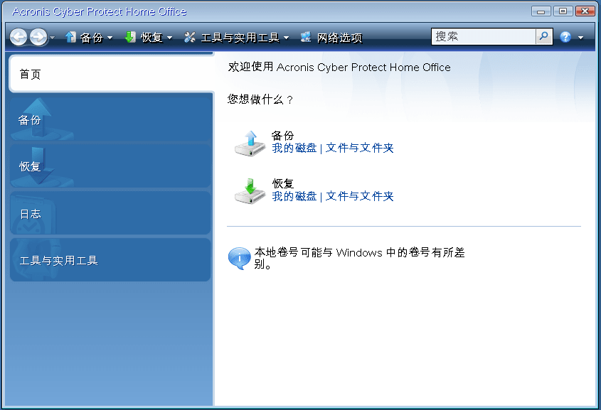 - 从可启动媒体启动,并选择 Acronis Cyber Protect Home Office。