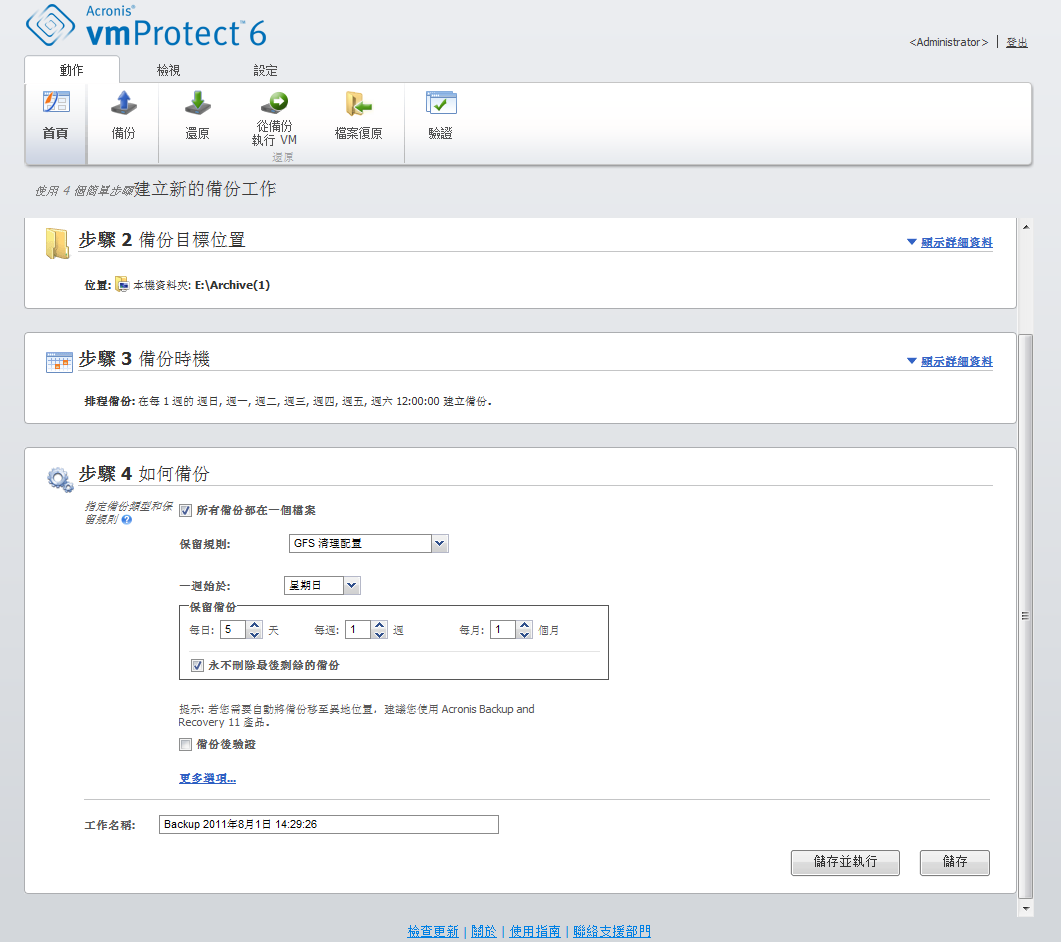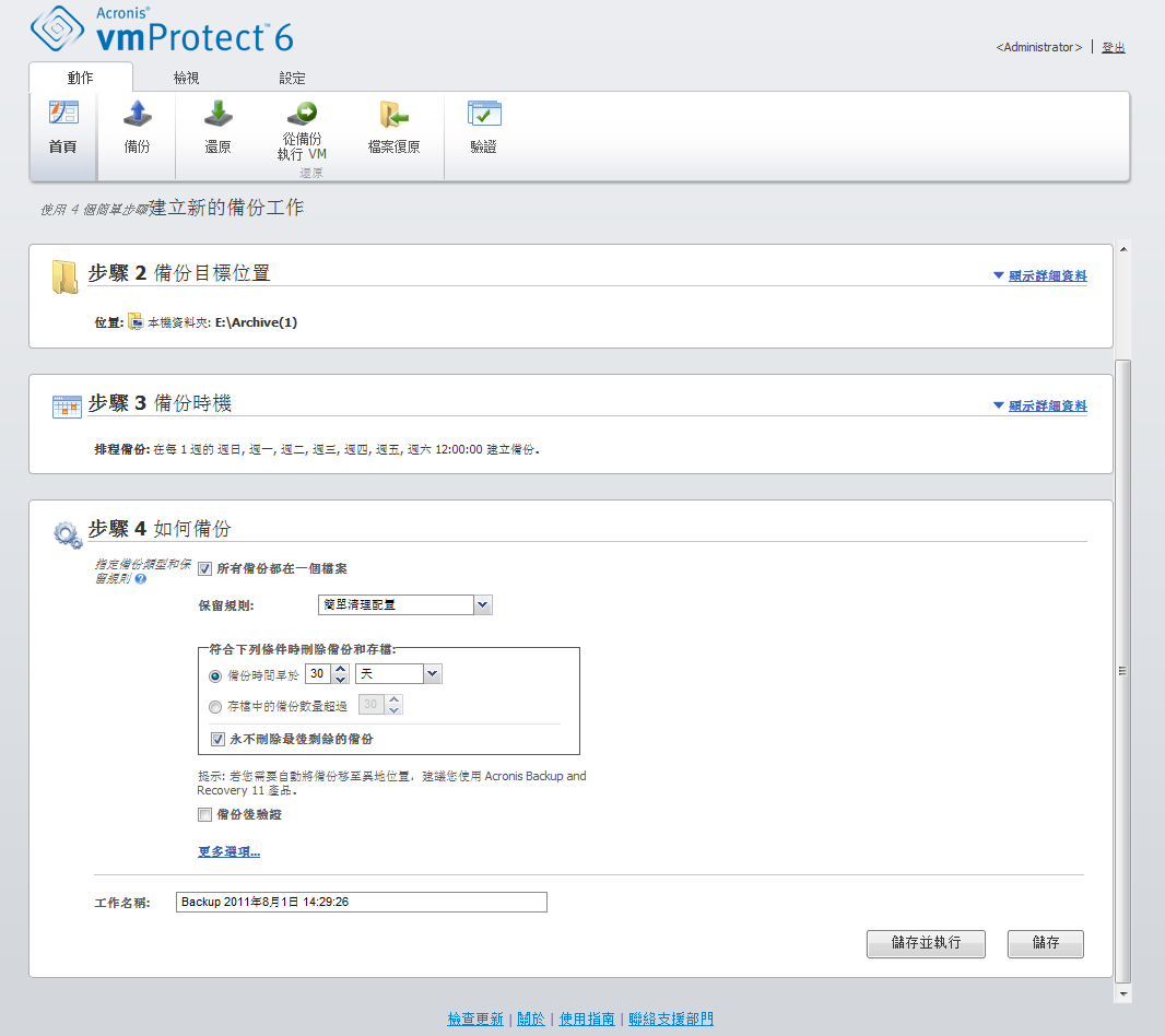 选择简单清理方案将使您可以在存档内保持一定数量的备份,或在一段时间内保留备份。