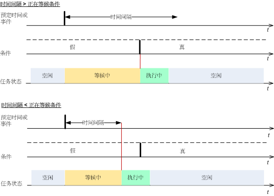 采用此设置后,预定程序开始监视条件,并会在条件满足时启动任务。如果一直不能满足条件,则任务将不会开始。